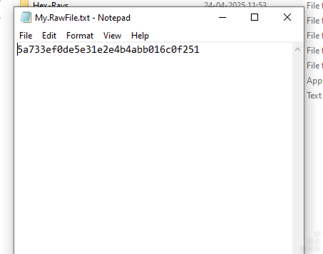 My.RawFile.txt has a hash(MD5) value of My.RawFile.exe.