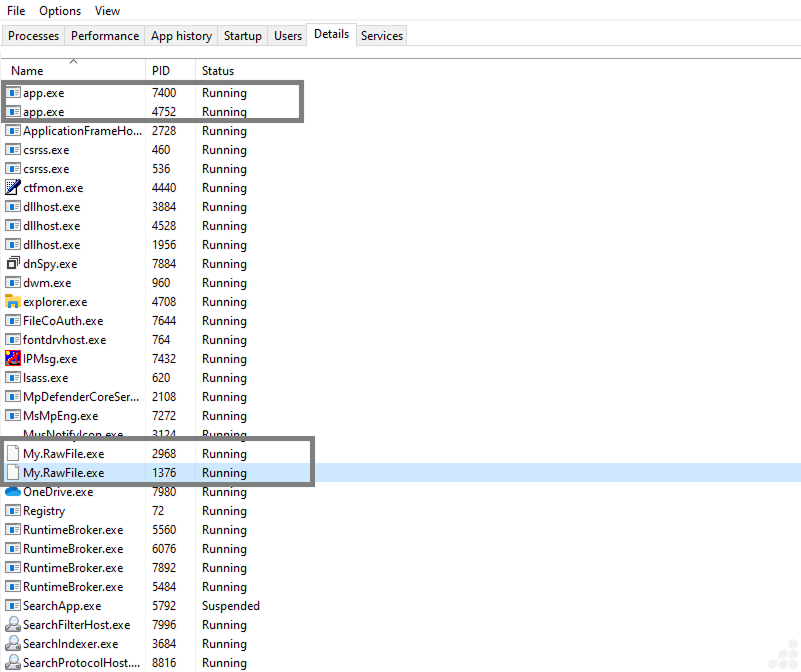 Also adding app.exe and My.RawFile.exe process in details