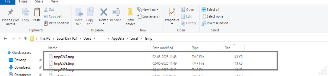 After that, the file was moved to the Temp directory, as shown in the image below.