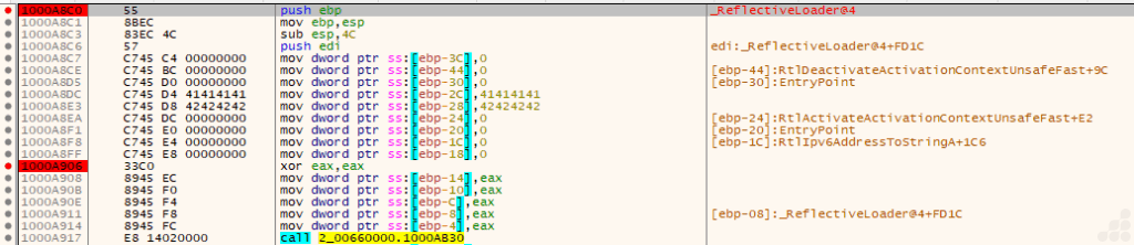 Now that we know this exported function is typically used in reflective DLL injection, we moved on to analyze the beacon.dll itself.
