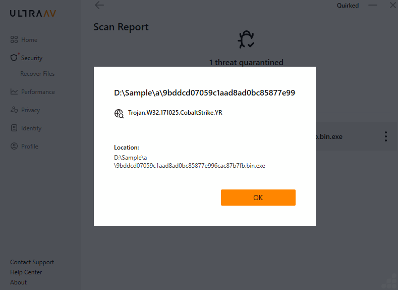 - Detected as following name by UltraAV: Trojan.W32.171025.CobaltStrike.YR