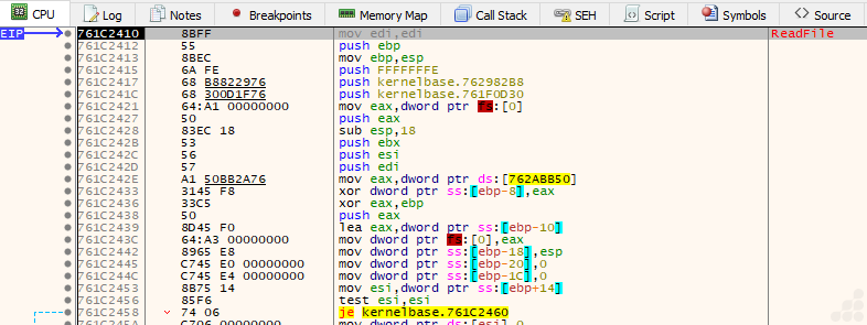 The instructions indicate that this is x86 (32-bit) code.