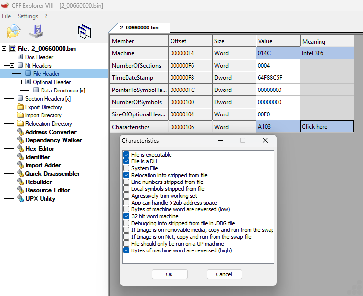 After dumping the PE image loaded in memory, we further analyzed the PE file, which revealed that the file is a DLL image.
