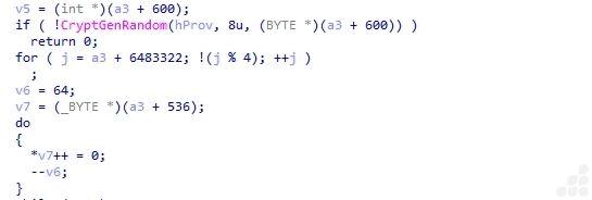 - Ransomware generates 32 random bytes and then 8 random bytes representing the ChaCha8 key and nonce respectively.