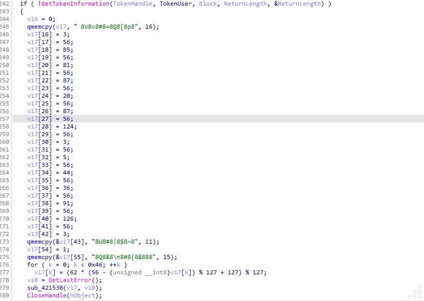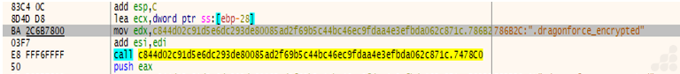 - The DragonForce ransomware binary used stack strings obfuscation technique where encrypted strings are stored on the stack and only decrypted to an array allocated at runtime. This approach helps to evade static analysis and signature-based detection.