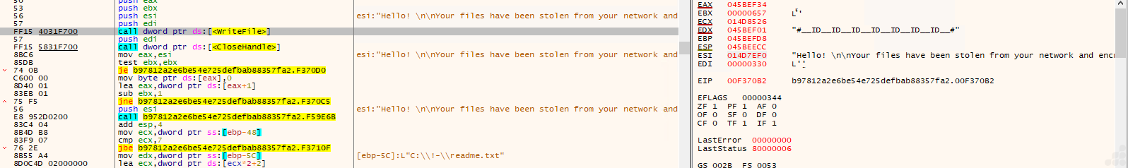 - If the mutex doesn’t exist, the ransomware creates it and continues its execution. This effectively locks the system into only one active ransomware process.