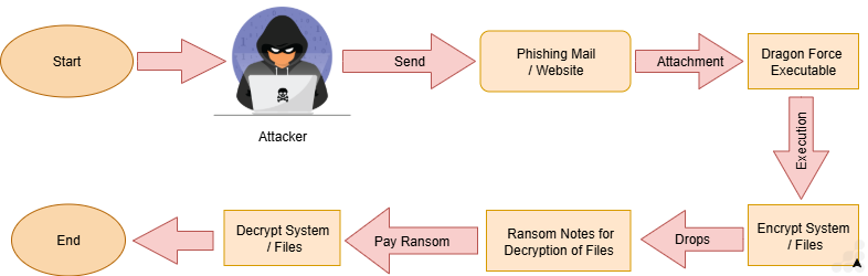 DragonForce is distributed via phishing emails, malicious websites, or exploiting vulnerabilities in systems.