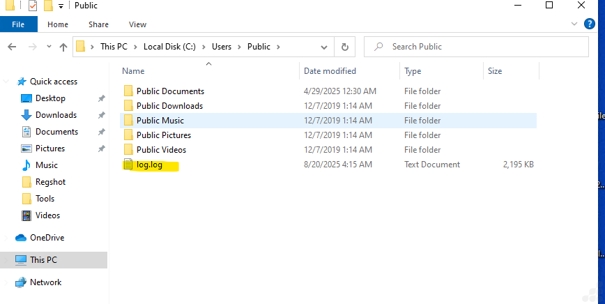 The log file created by ransomware at C:\Users\Public\log.log could potentially serve multiple purposes: