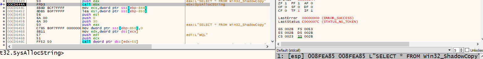 - Using WMI’s query “SELECT * FROM Win32_ShadowCopy” to extract the shadow copies and delete them using the Delete method. SELECT * FROM Win32_ShadowCopy