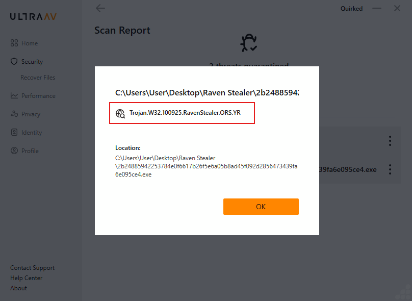- Detected as the following name by UltraAV: Trojan.W32.100925.RavenStealer.ORS