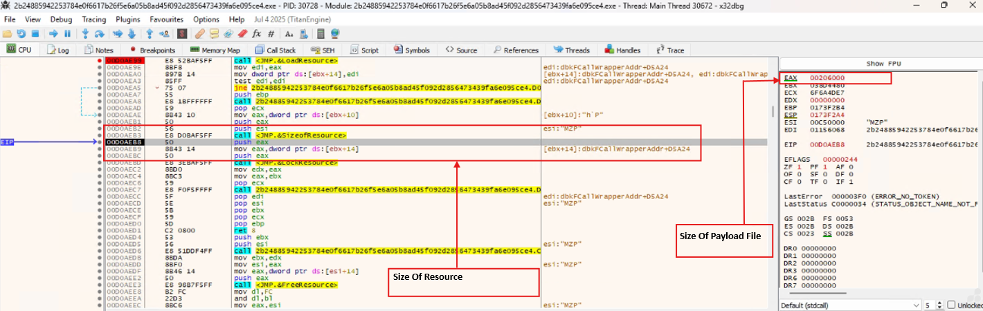 - Resource Embedding: The payload is embedded directly into the .rsrc section, a common Delphi practice for bundling external modules or data.