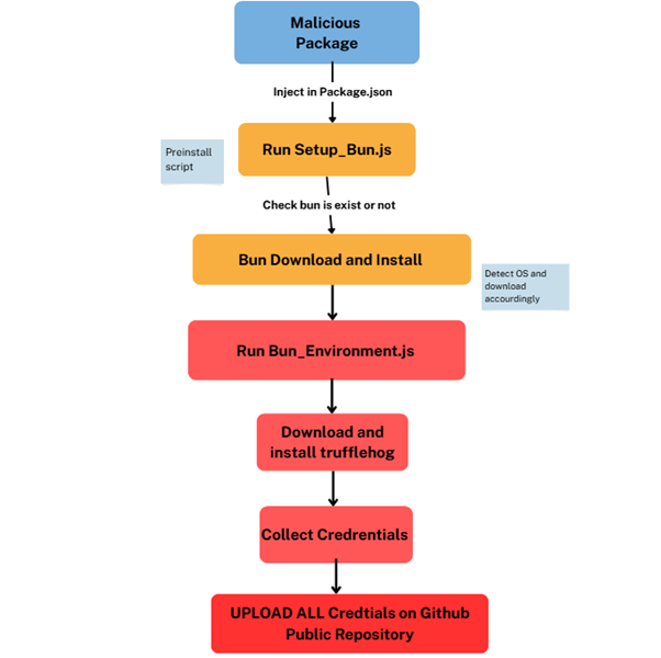 The answer is both brilliant and incredibly devious. Most security scanners are built to monitor the Node.js environment for suspicious behavior. So what does the malware do? It simply doesn’t use Node.js. Instead, it brings its own execution environment by downloading and leveraging the legitimate Bun runtime to carry out its malicious activity. By operating outside the traditional Node.js runtime and leveraging a trusted but less-monitored platform, the malware remains effectively invisible to security tools that aren’t even looking for it.